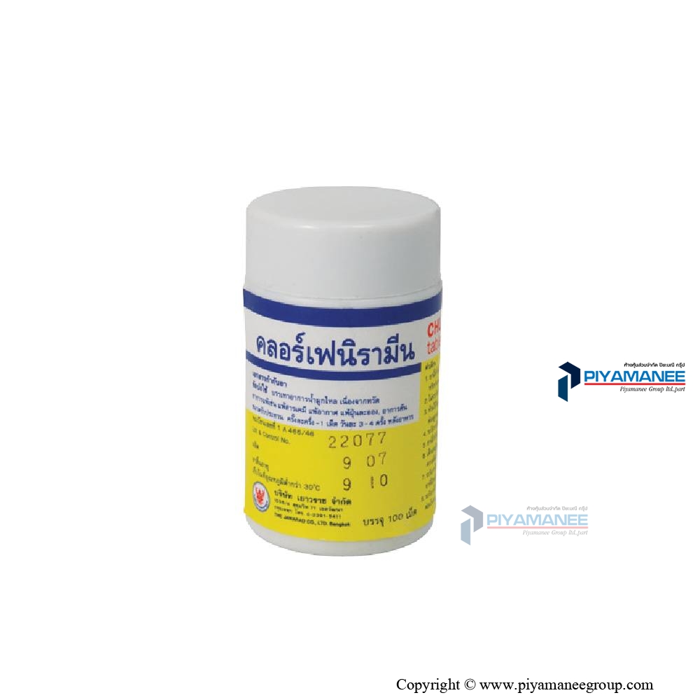 คลอเฟนิรามีน 4 mg. 1กระปุก*100เม็ด