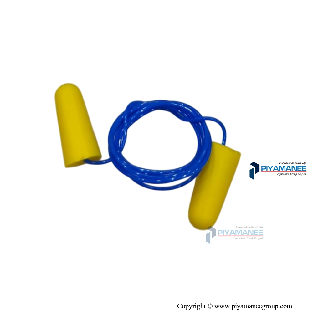 EAR COMFORT EC-1003A-C ปลั๊กอุดหูลดเสียง ชนิด PU Foam สีเหลือง มีสาย PVC สีน้ำเงิน # BESTSAFE
