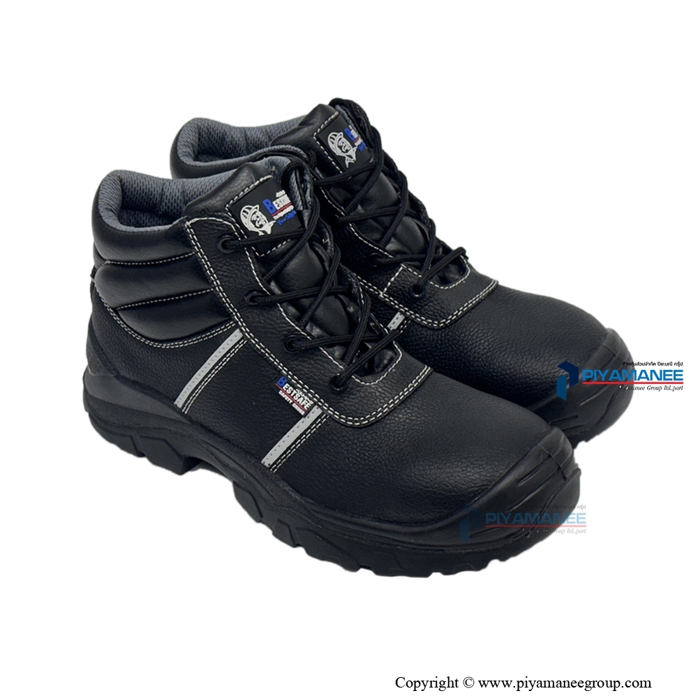 T02-TEXAS (6340A) #BESTSAFE รองเท้านิรภัยแบบหุ้มข้อ หนังวัวอัดลายกันน้ำ สีดำ พื้น PU injection, หัวเหล็ก 200 J กันทะลุเสริมแผ่นเหล็ก S3 SRC ยี่ห้อ BESTSAFE