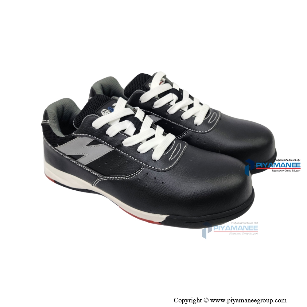 NON STOP- A NEW [S2] รองเท้านิรภัยหุ้มส้น ผ้าใบทรงสปอร์ต วัสดุกันน้ำ-กันสารเคมี สีดำลายฟ้า พื้น PU หัวคอมโพสิต ยี่ห้อ BESTSAFE