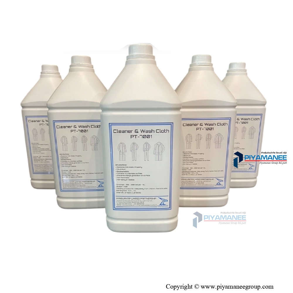 น้ำยาซักผ้า ป้องกันไฟฟ้าสถิตย์ Model : PT-7001 Cleaner & Wash Cloth For Antistatic Fabric Size :1 GL.(3.8 L.) MADE IN THAILAND