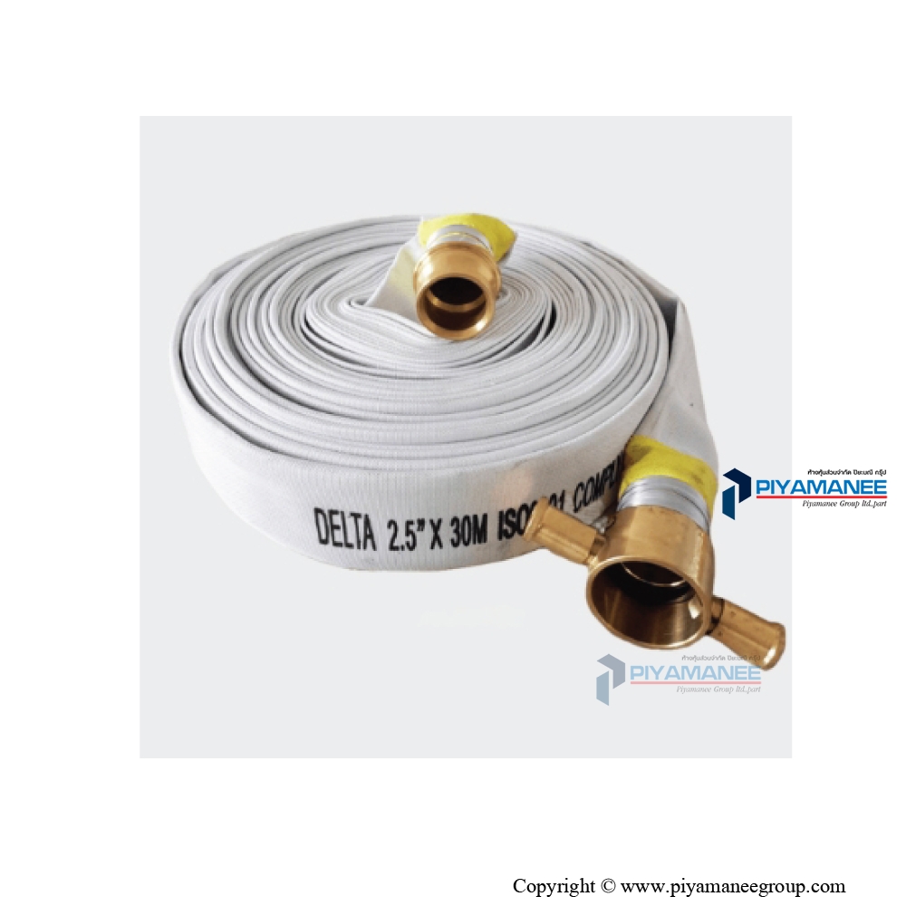สายส่งน้ำดับเพลิง ชนิด Polyester (สีแดง) ขนาด 1.5 นิ้ว x 30 m + ข้อต่อทองเหลือง 2.5 นิ้ว ยี่ห้อ DELTA